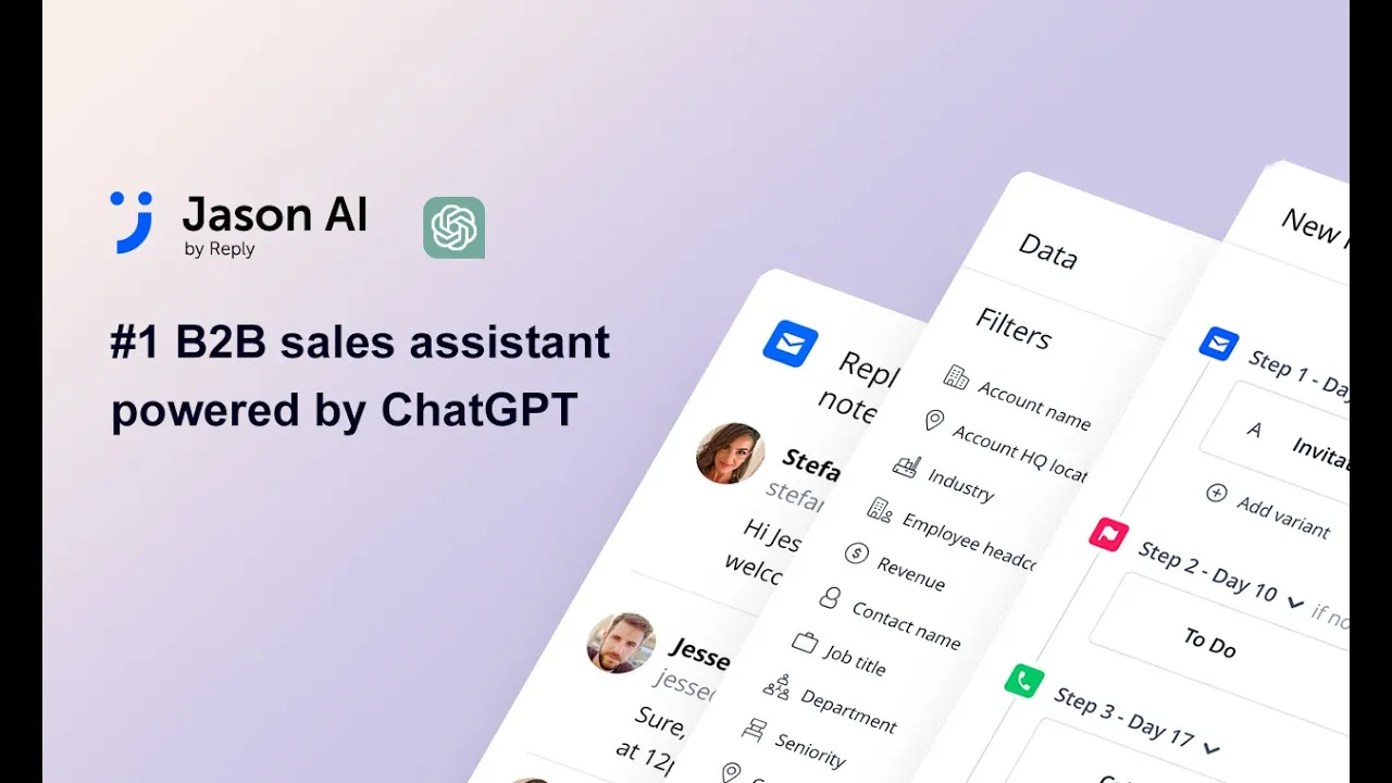 Jason AI – это разговорный ИИ-помощник для B2B, который использует технологию ChatGPT для автоматизации работы с клиентами, управления ответами и бронирования встреч без особых усилий. Ощутите магию продаж, управляемых искусственным интеллектом, и начните бесплатно уже сегодня!